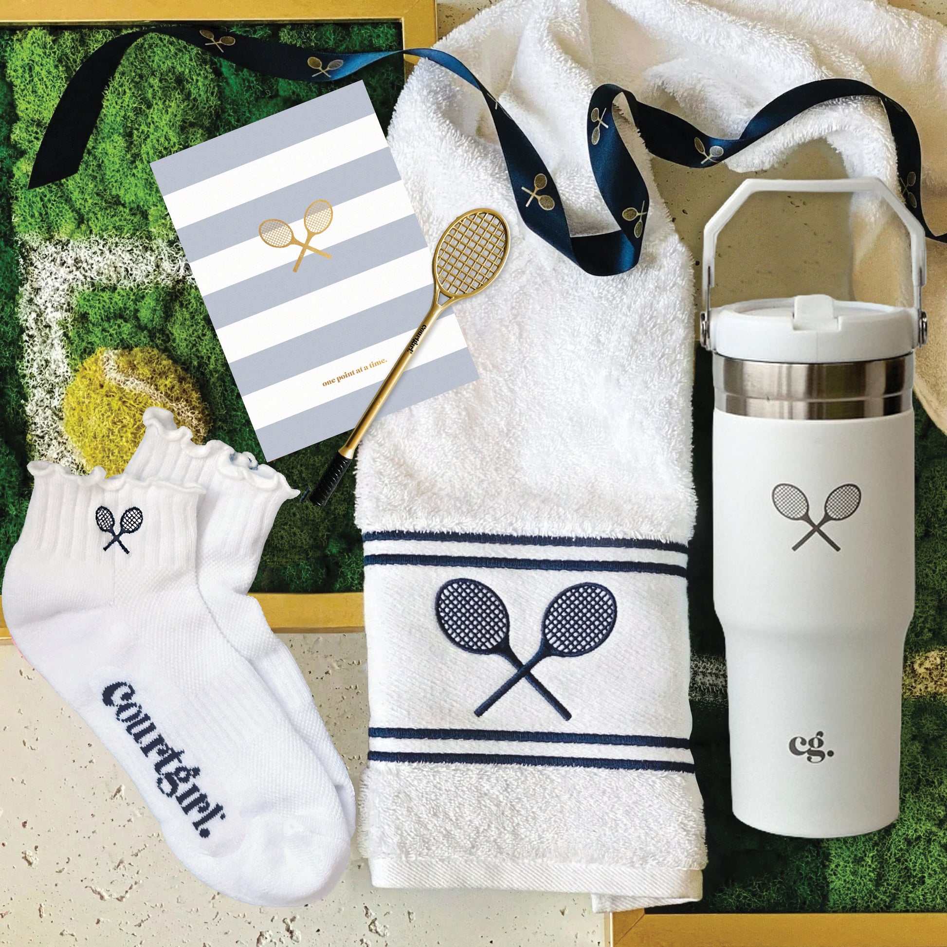 For those matches that never end you need a bigger bottle, a plush towel and a set of cute socks. This kit keeps you going from match to brunch…